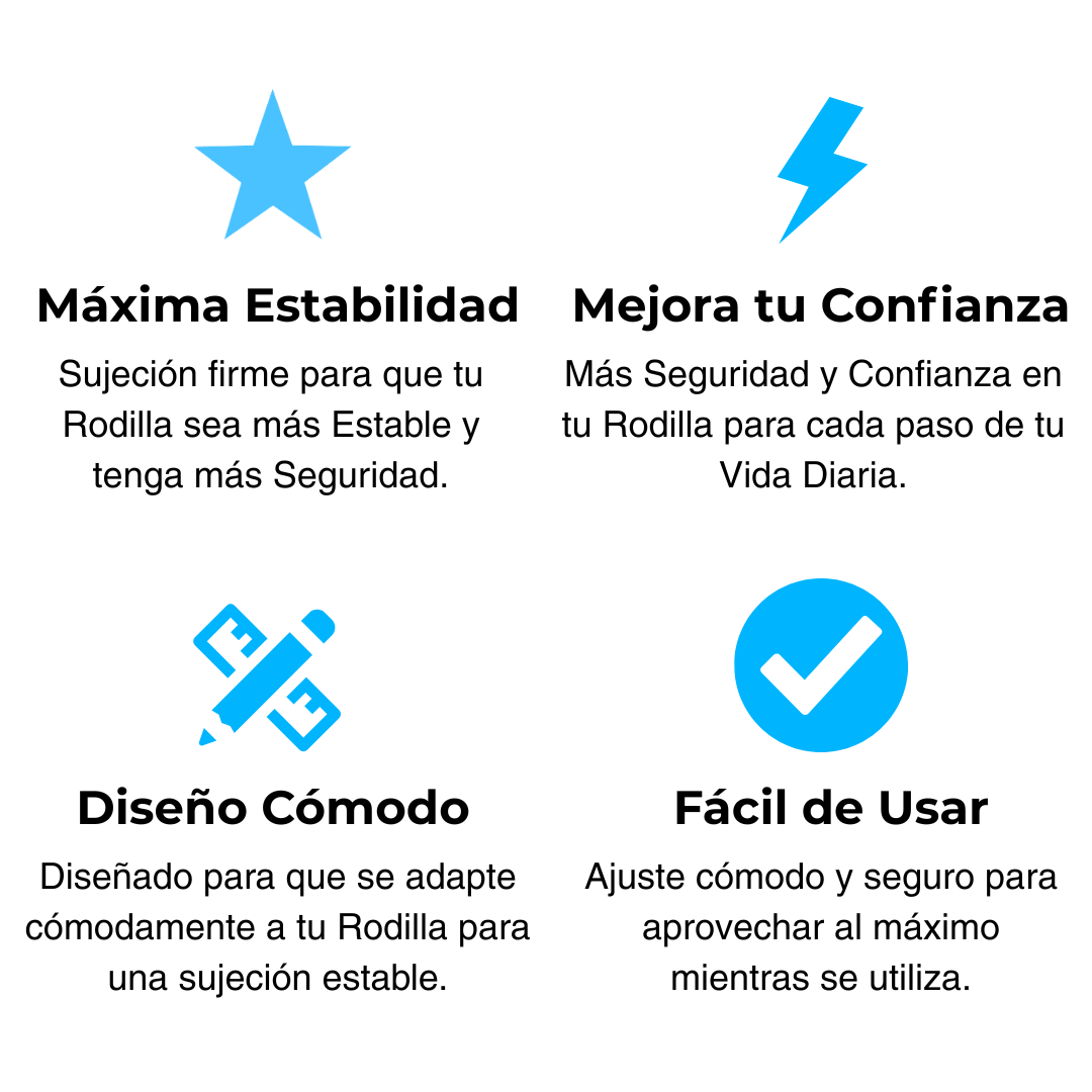 Sujeción firme para una Rodilla más Estable. Vuelve a moverte con mayor Confianza y Estabilidad para tener Seguridad en cada Aspecto de tu Vida Diaria.